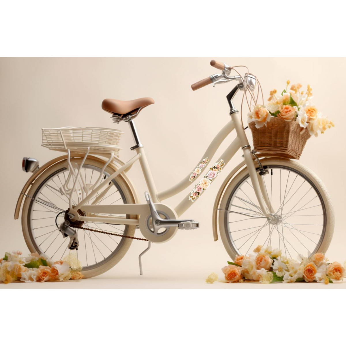 Barack rózsaszín, sárga rózsás virágos bicikli matrica, női és gyerek virág mintás kerékpár matrica