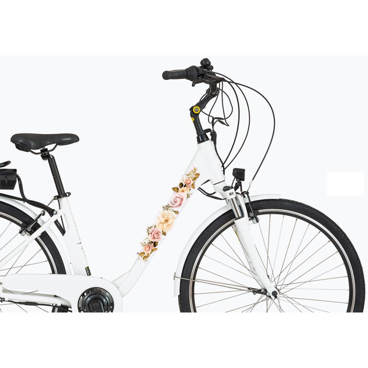 A csomag tartalmaz 2 pár (4 db) női virágos kerékpár matricát a megadott színben a bicikli két oldalára és vázára.