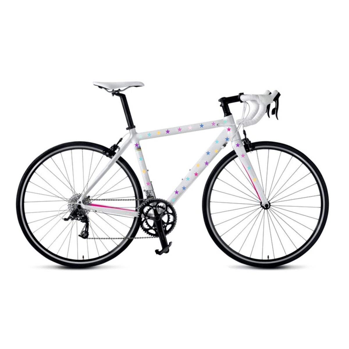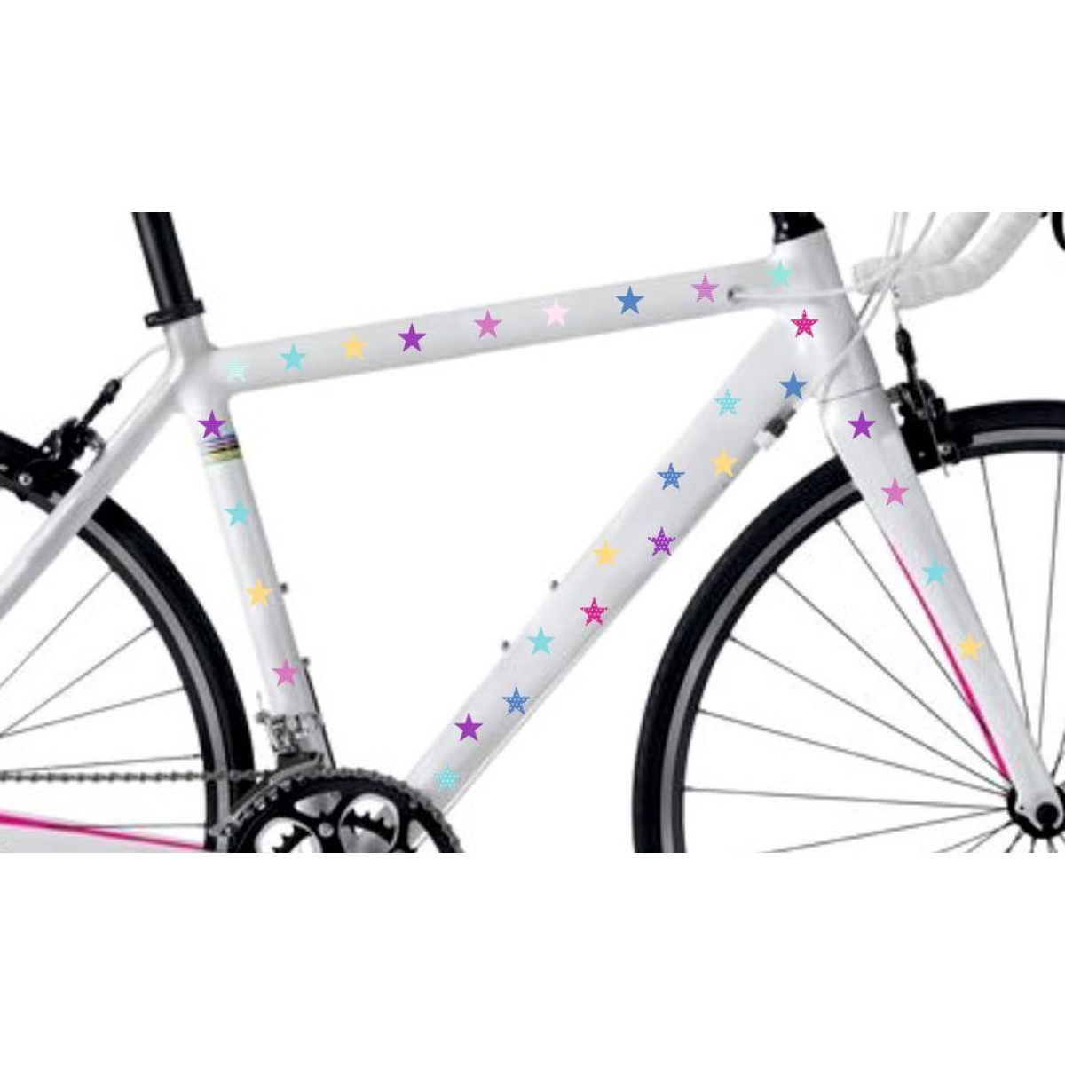 Színes csillagos bicikli matrica szett, színes, pöttyös, csíkos csillagok kerékpár matrica csomag