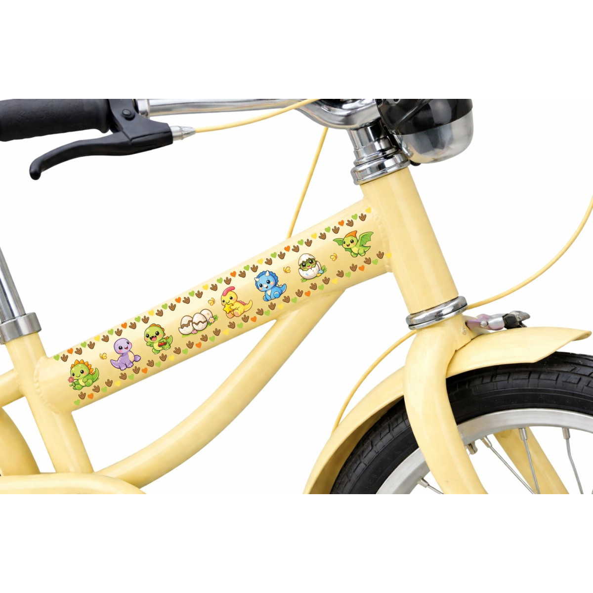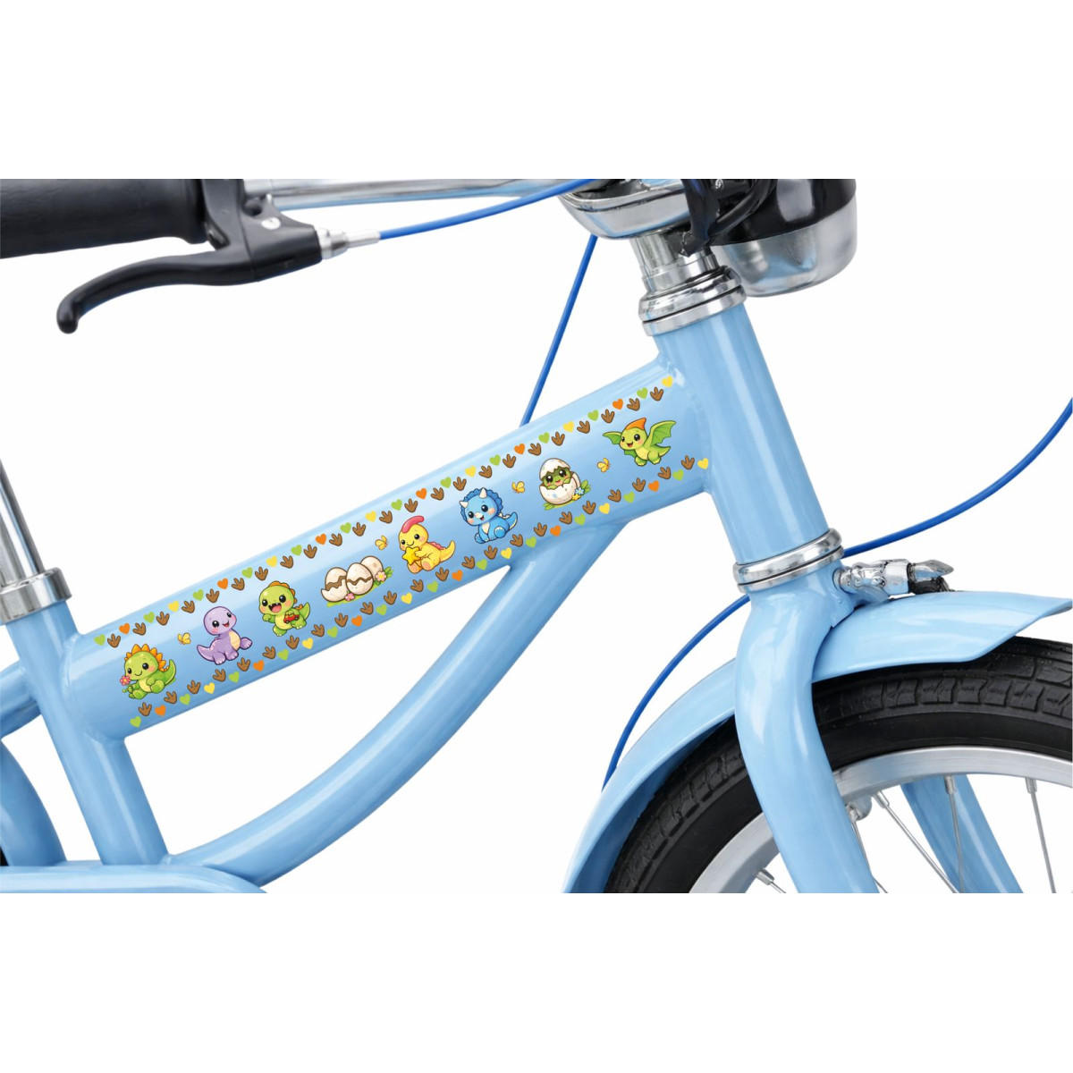 Dínós gyerek bicikli váz matrica, vízszintes, virágos bicikli matrica, magyar termék