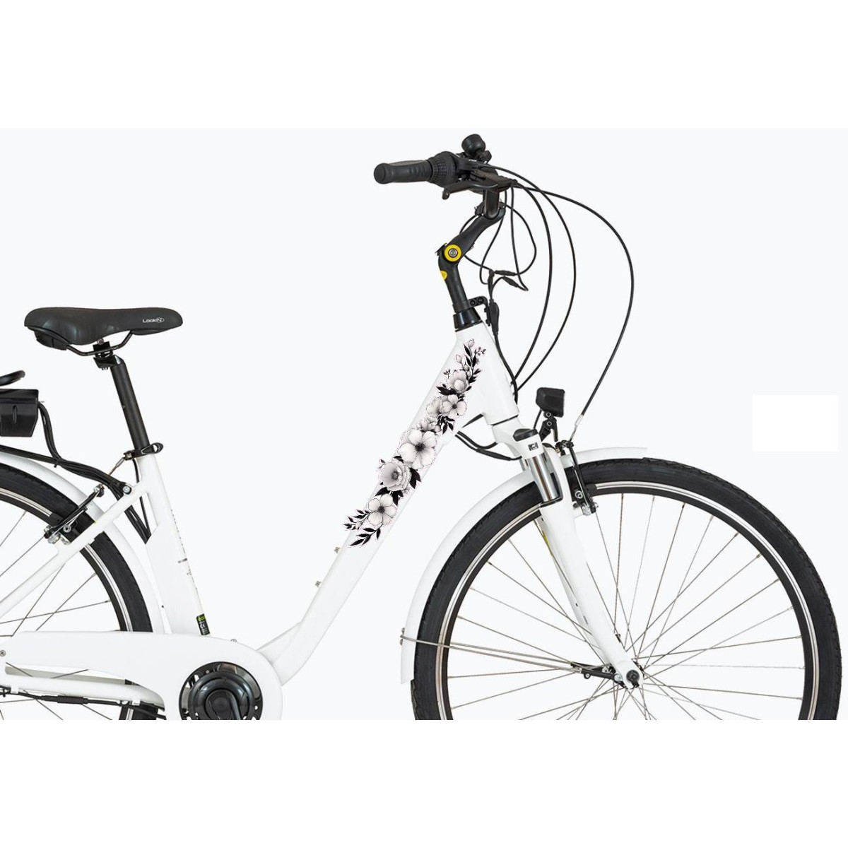 Fekete-fehér virágos bicikli matrica, női és gyerek virág mintás kerékpár matrica