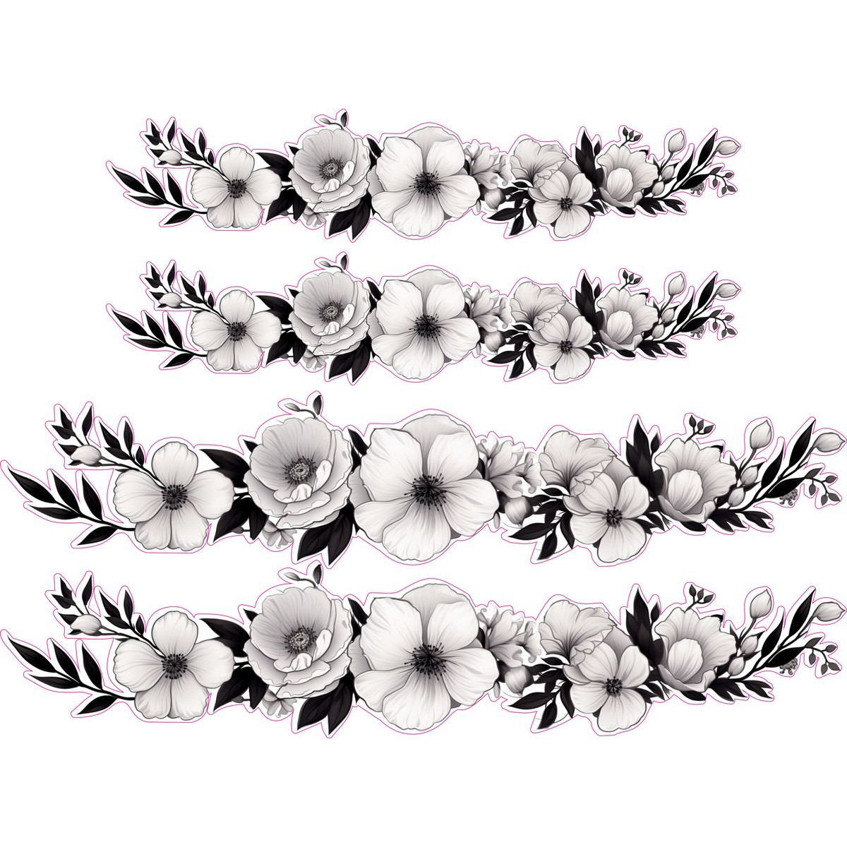 Fekete és fehér virágos női kerékpár matrica - 4 db-os szett