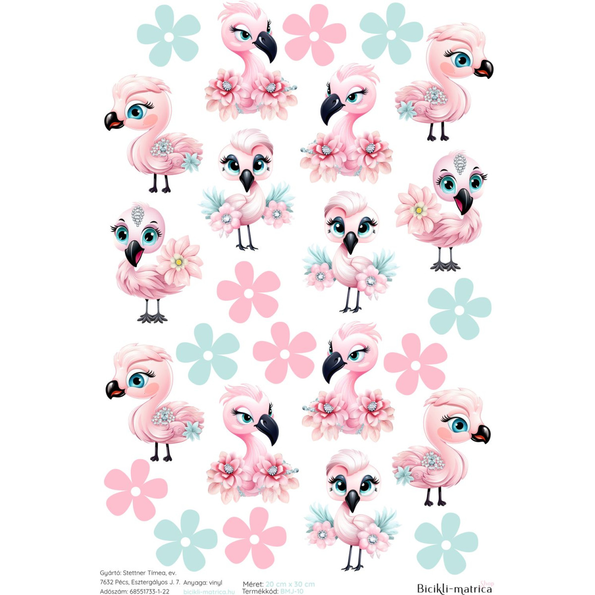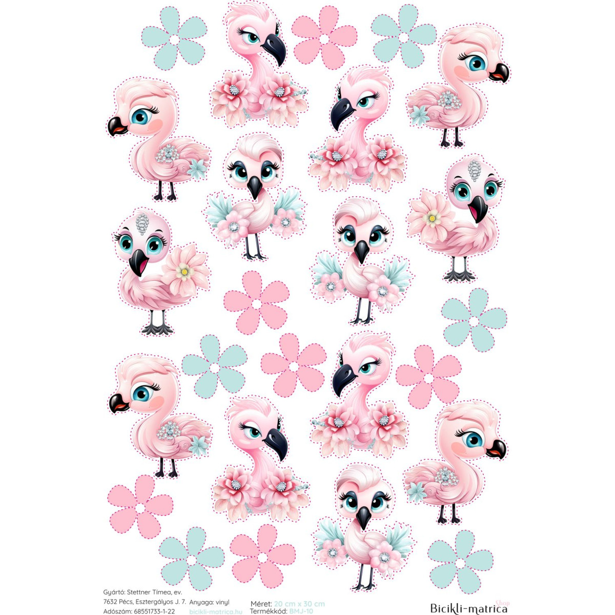 Rózsaszín flamingós, menta és pink virágos kerékpár matrica