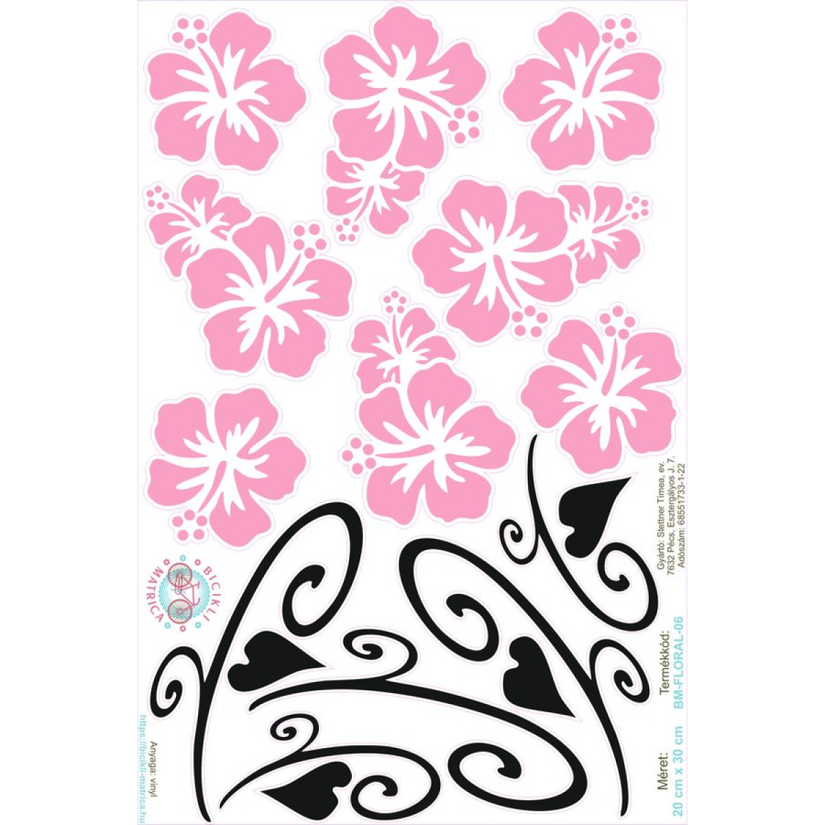 Hawaii virágos bicikli matrica, rózsaszín - 17 db-os
