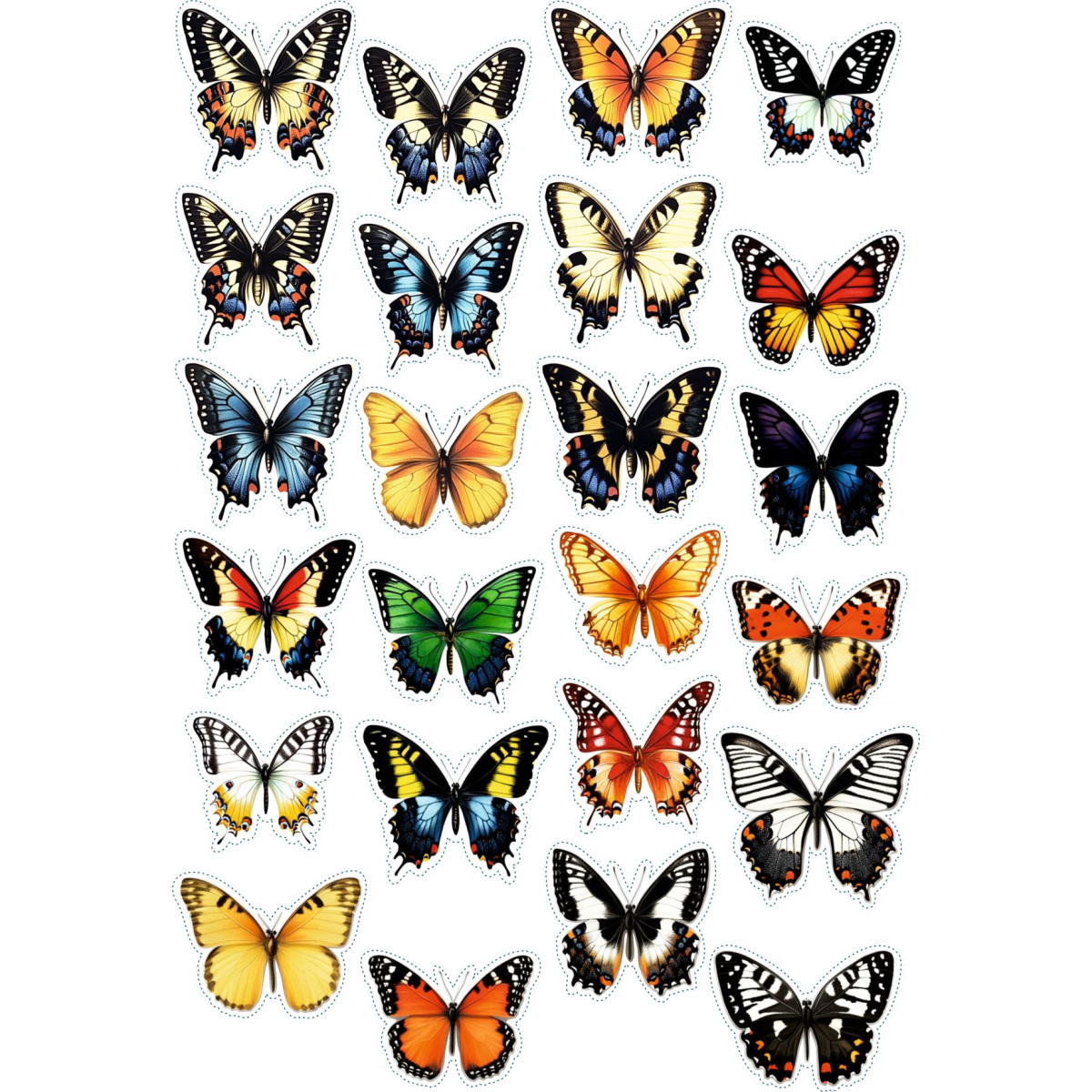 Élethű lepkés kerékpár matrica, színes - 24 db-os