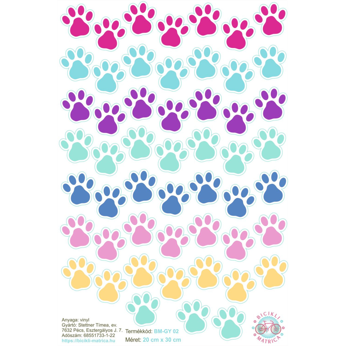 vízálló, mosható, magyar matrica, fehér fólia, fehér körvonallal a kutya mancsok körülAnyaga: vinyl
