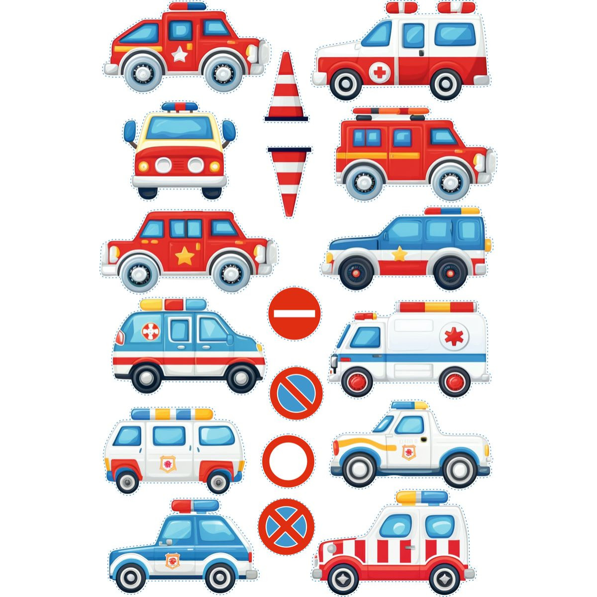 Rendőrautó, mentős, tűzoltóautó gyerek bicikli matrica - 18 db-os
