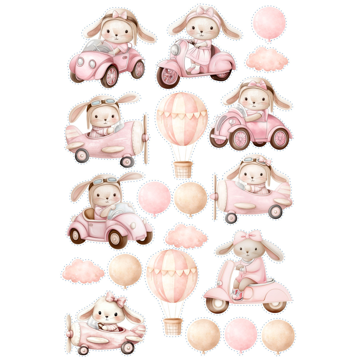 Kislány járműves, nyuszis gyerek kerékpár matrica - 20 db-os
