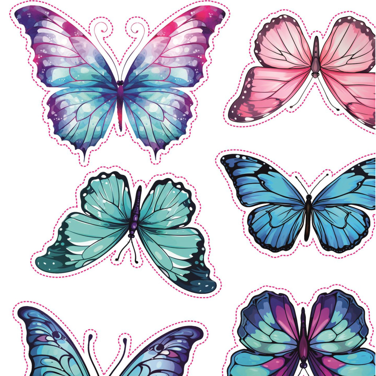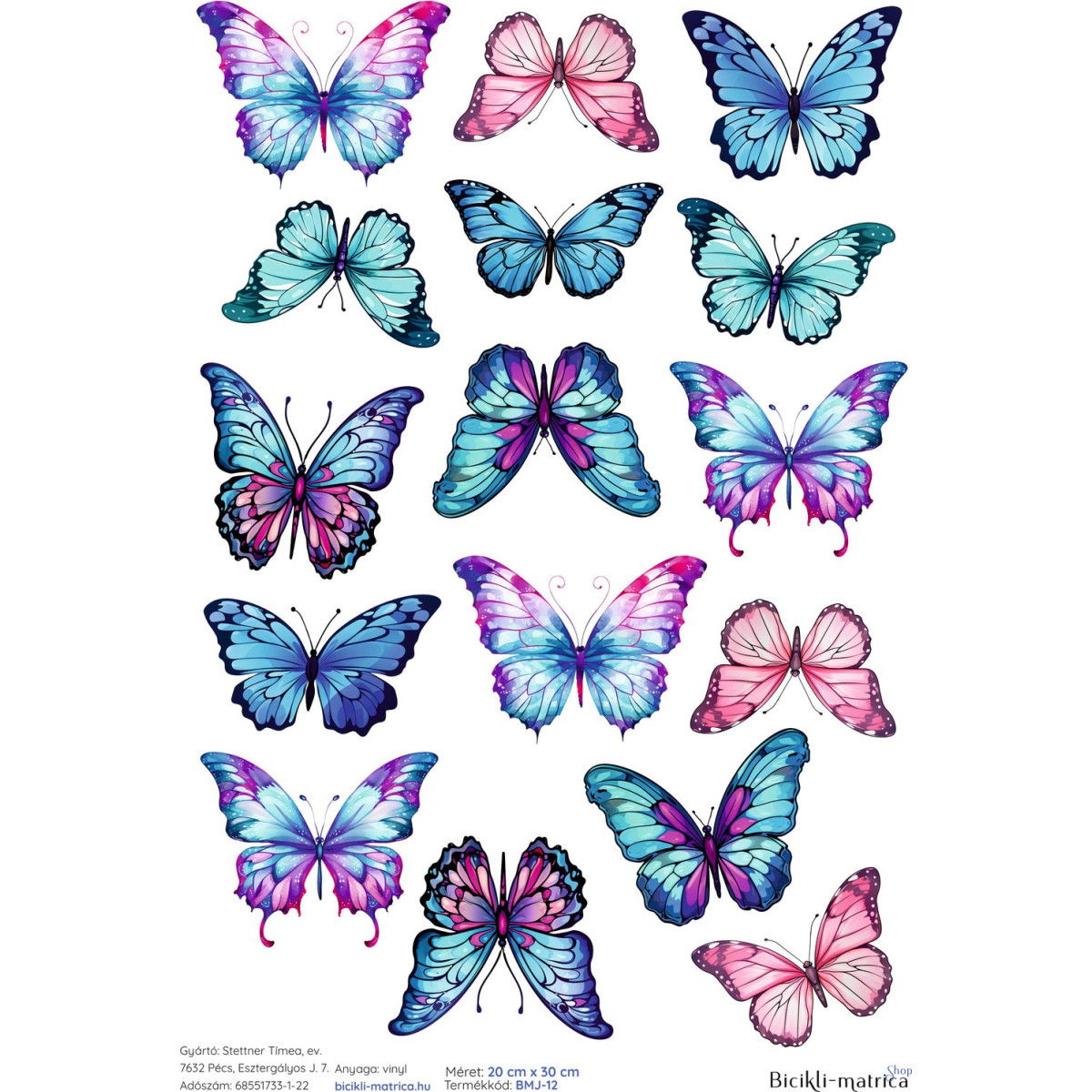 Pillangós bicikli matrica, kék és rózsaszín - 16 db-os