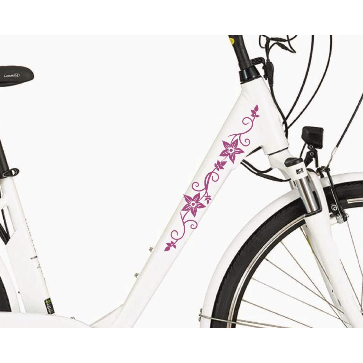 Orgona lila virágos kerékpár matrica, fehér fólia, minden színű biciklire