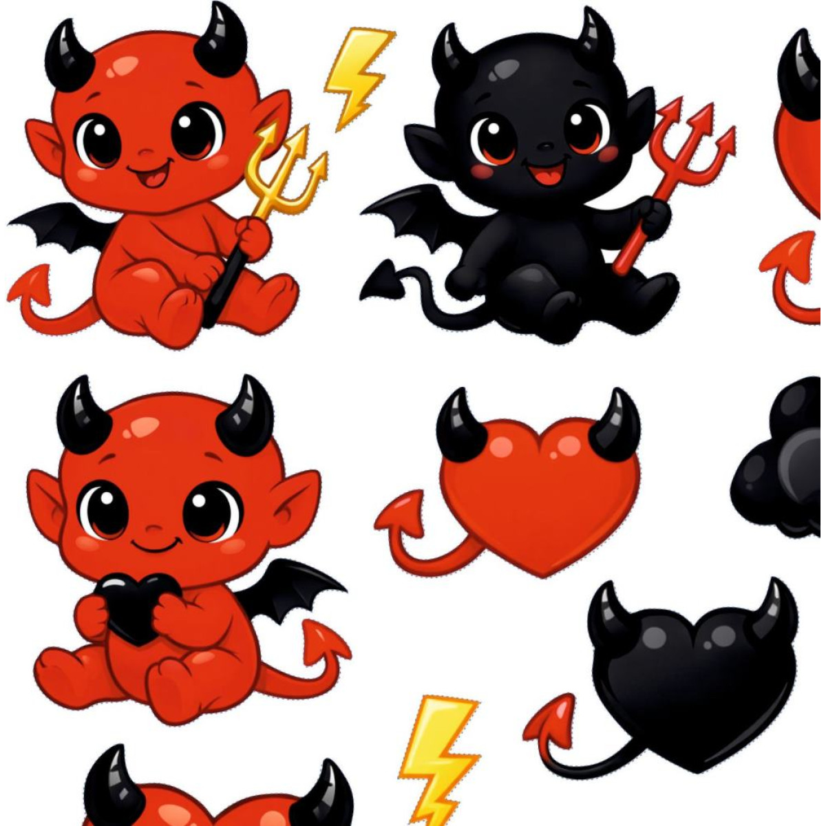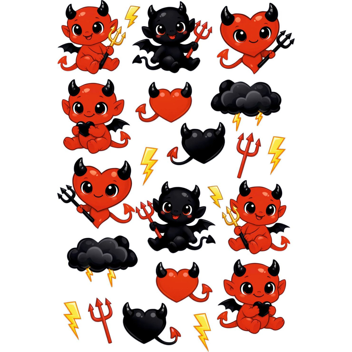 Ördögös piros, fekete, szíves gyerek kerékpár matrica - 20 db-os