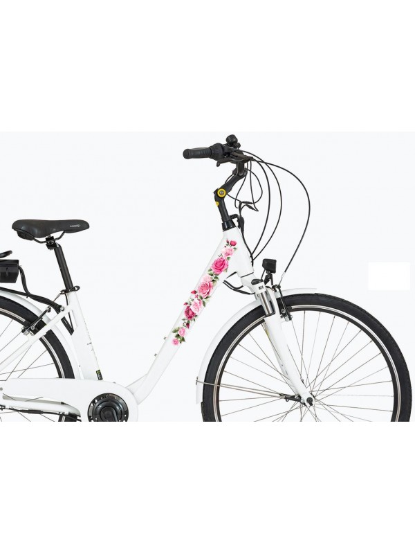 A csomag tartalmaz 3 pár (6 db) női virágos kerékpár matricát a megadott színben a bicikli két oldalára és vázára.