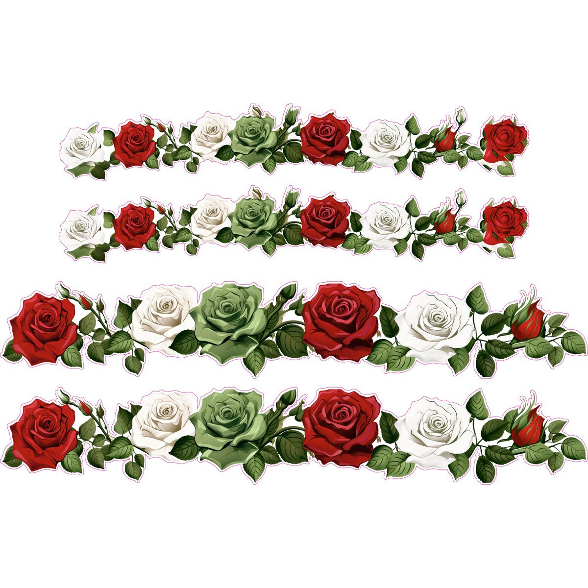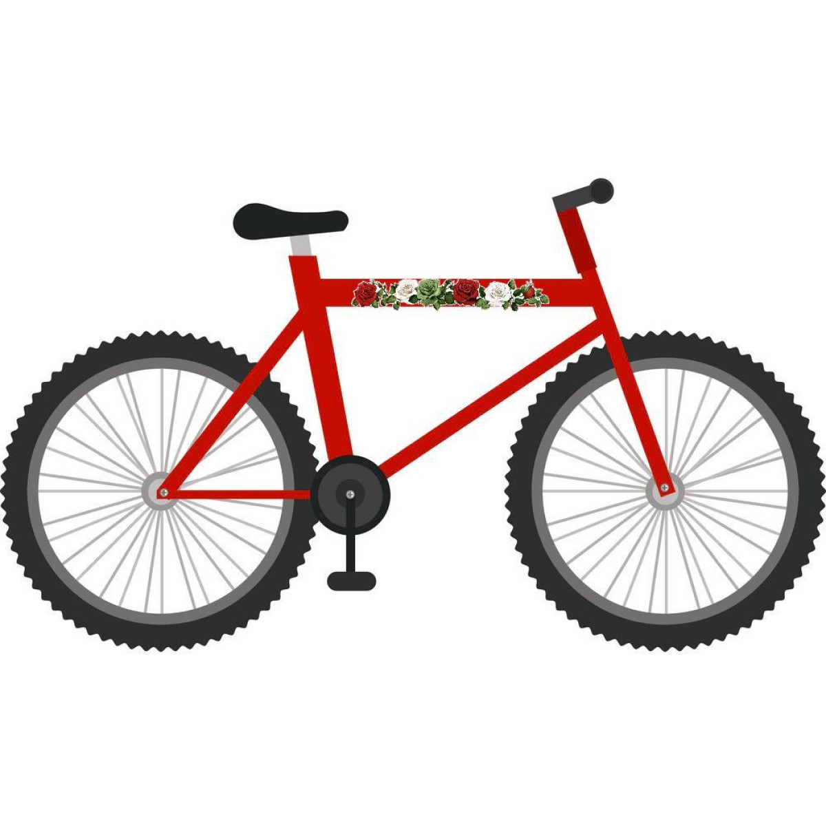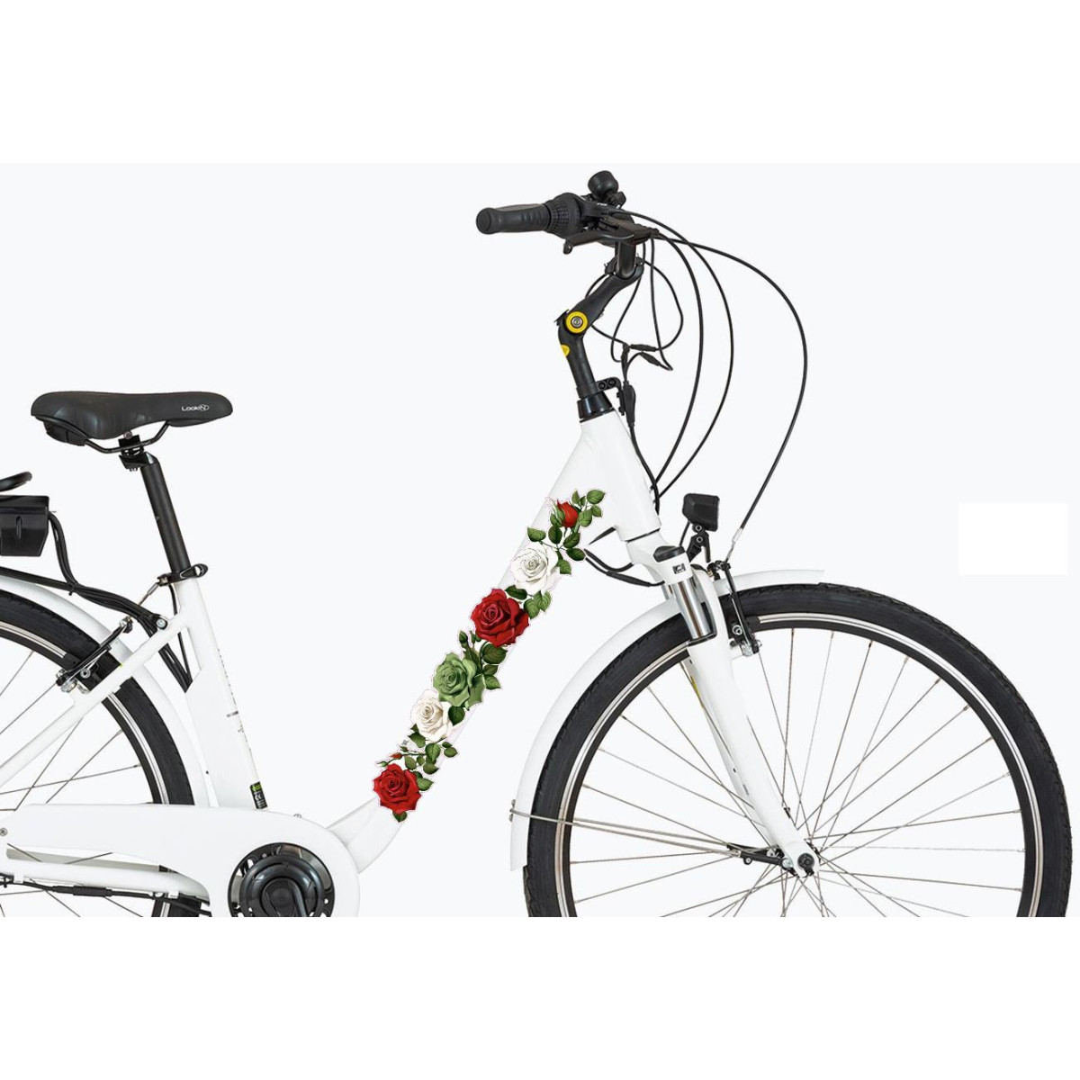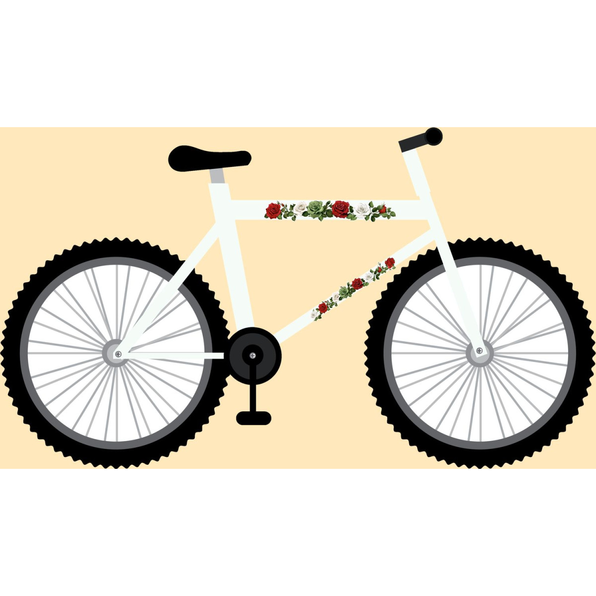 Piros, fehér, zöld rózsa virágos női bicikli matrica - 4 db-os szett