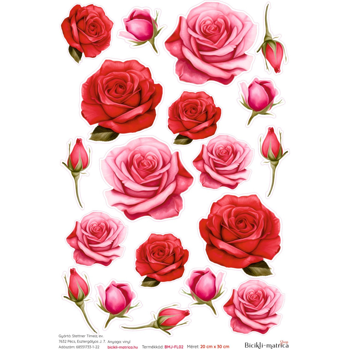 Virág matrica, rózsás kerékpár matrica szett, piros rózsa virágos bicikli matrica csomag