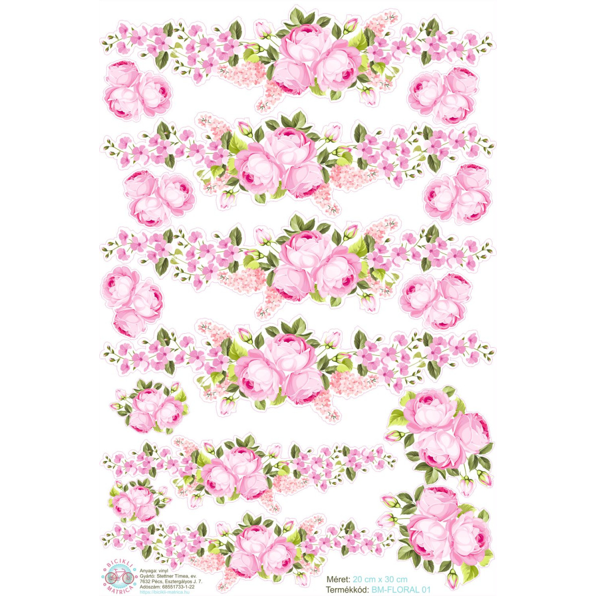 Virágos, rózsás kerékpár matrica - 16 db-os
