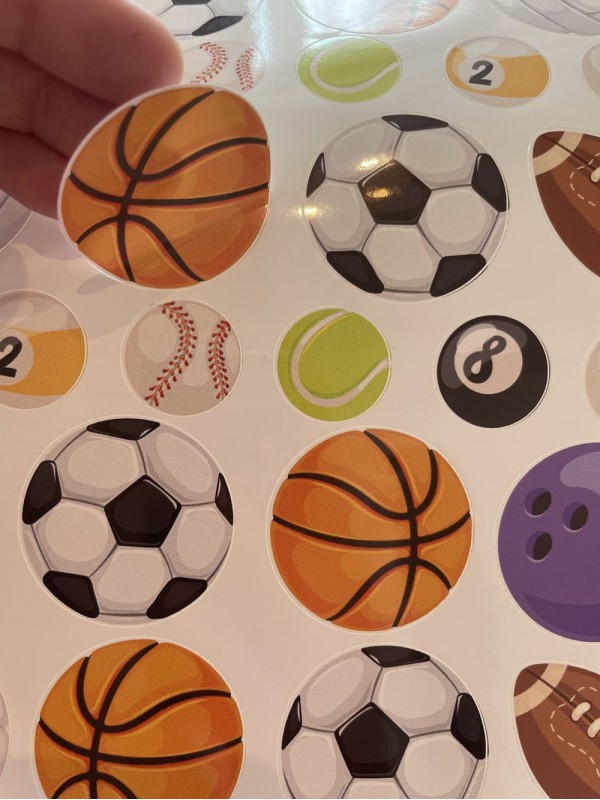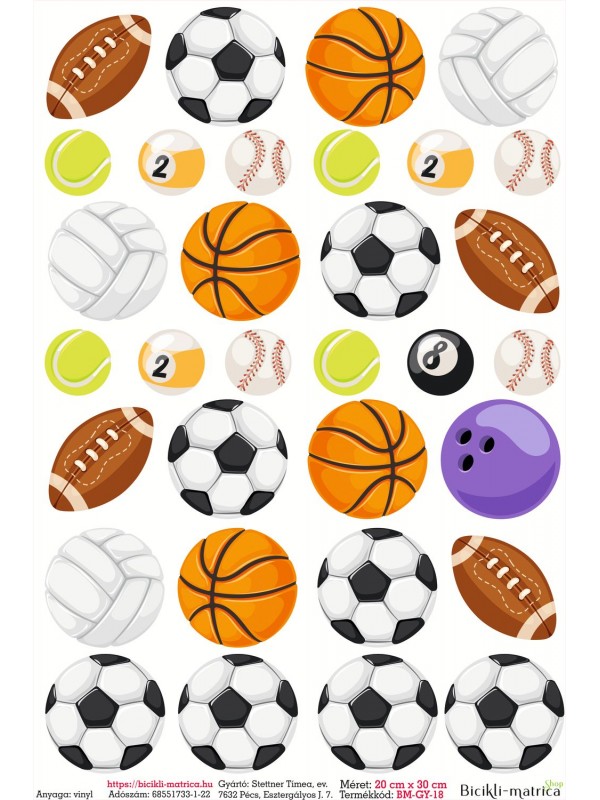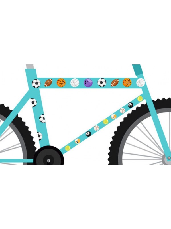 Baseball, focilabda, kosárlabda, röplabda, billiárd sport témájú gyerek bicikli matrica szett