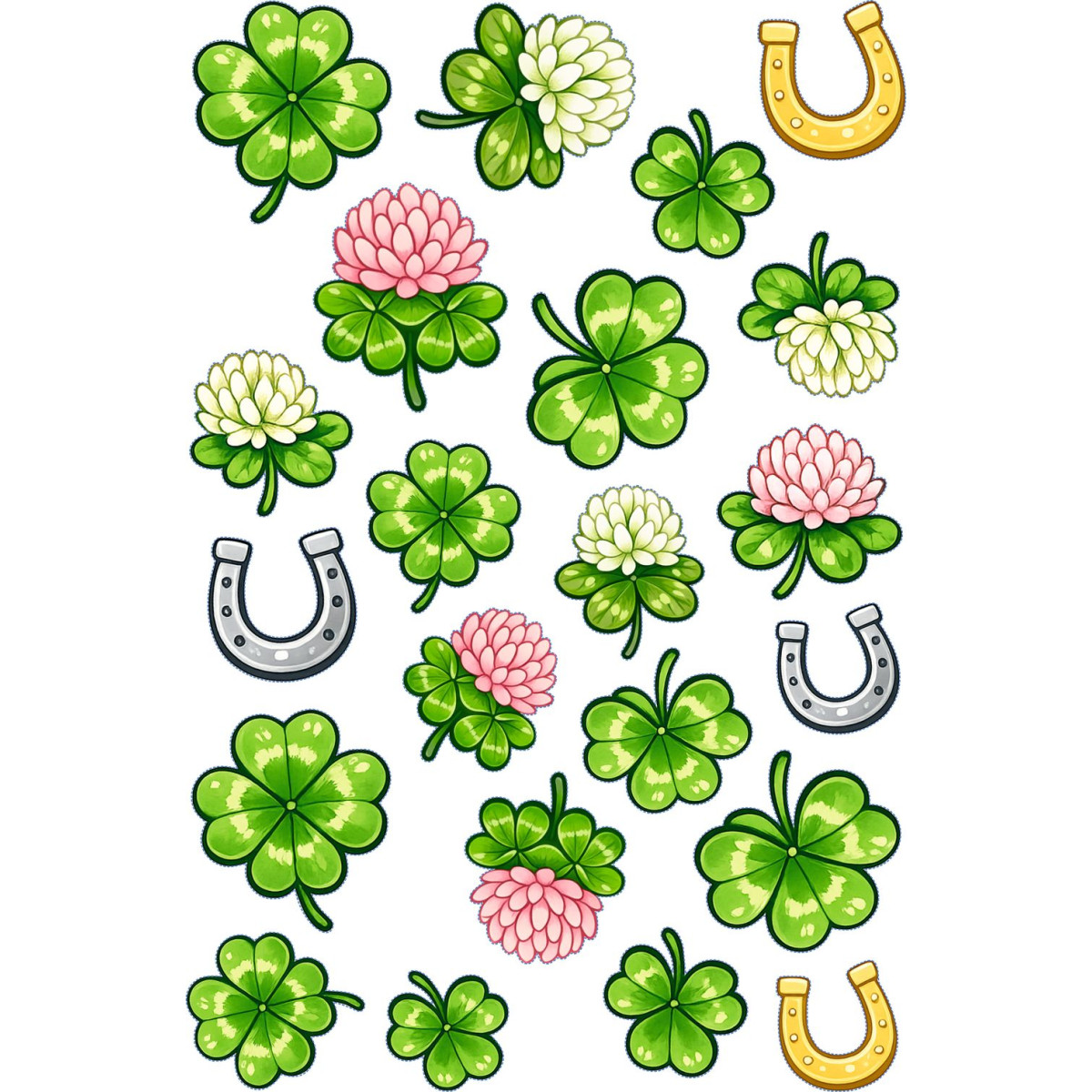 TAG-ek: Szerencse, Négylevelű, Lóhere, virágos, kerék, matrica, db-os