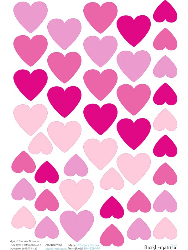 Szíves kerékpár matrica, pink, rózsaszín - 42 db-os