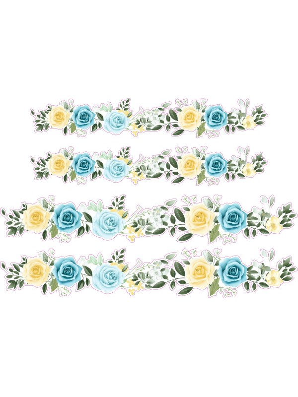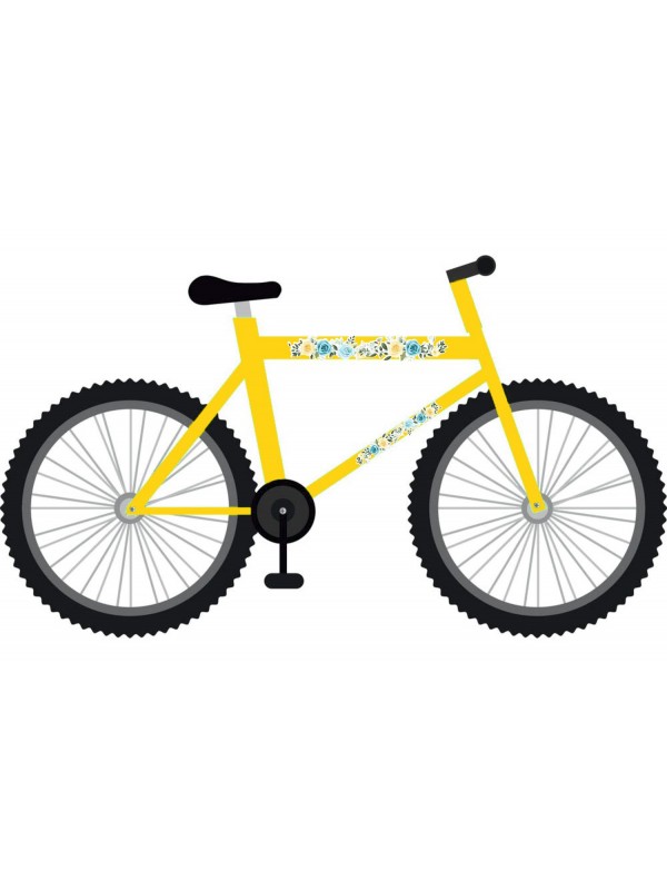 Türkizkék és sárga rózsás, virágos női kerékpár matrica - 4 db-os szett