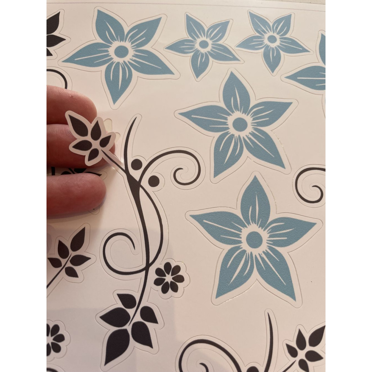 Vintages virágos kerékpár matrica, türkiz - 21 db-os szett