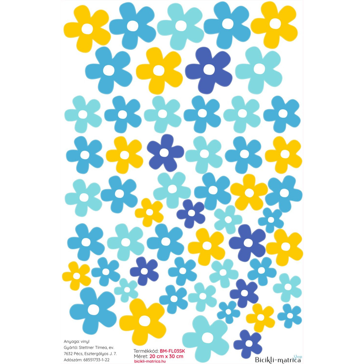 Virágos kerékpár matrica, kék, menta, sárga - 55 db-os