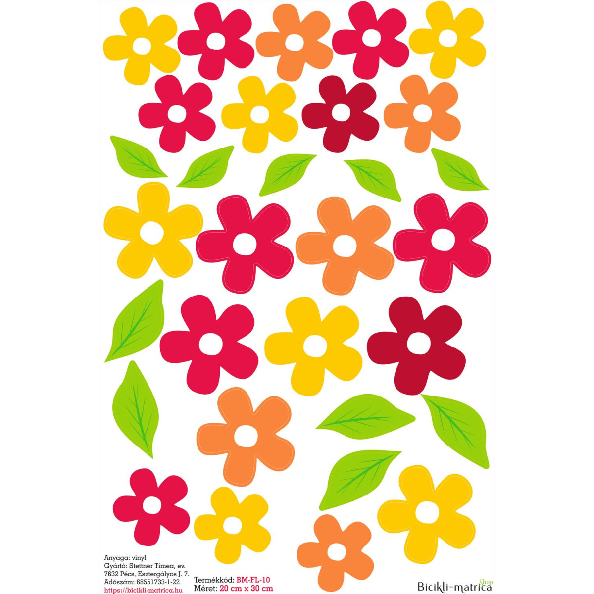 Virágos kerékpár matrica levelekkel, piros, sárga - 31 db-os