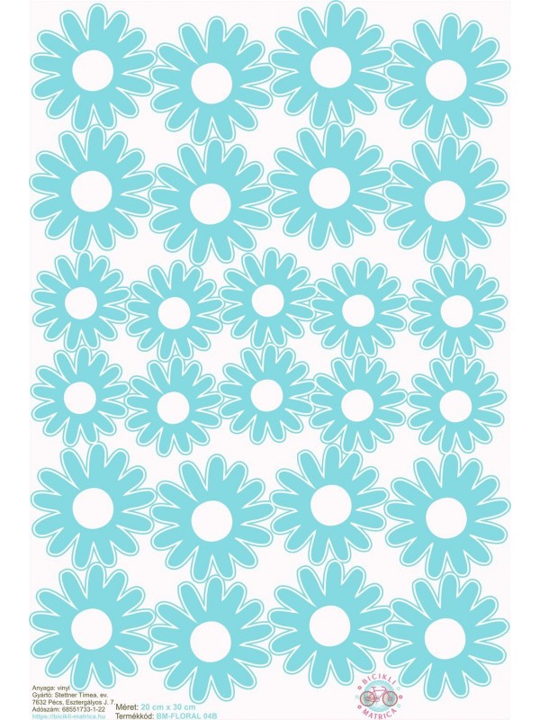 Türkizkék virágos kerékpár matrica - 26 db-os