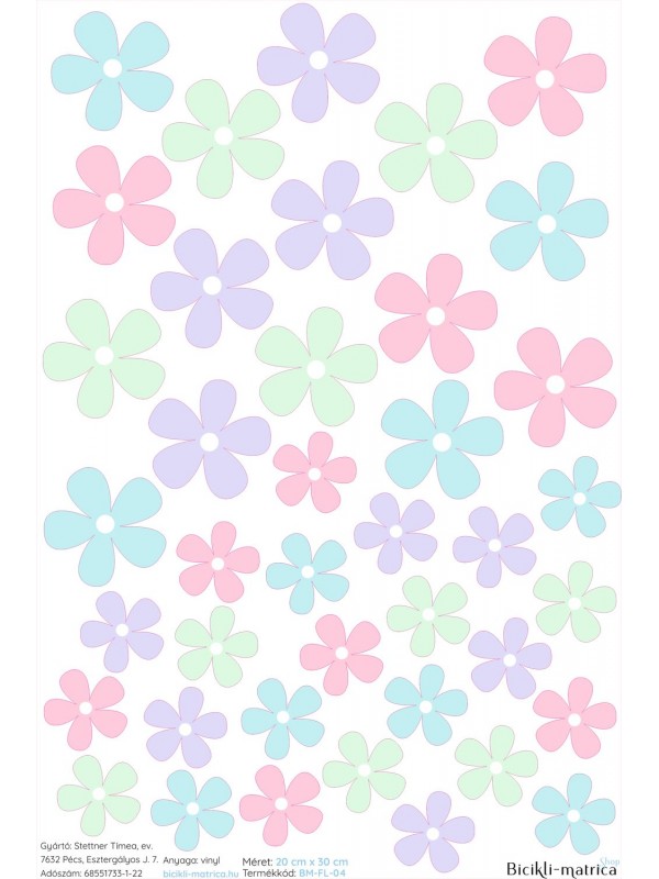 TAG-ek: Pasztell, Virágos, kerék, matrica, lila, zöld, rózsaszín, kék, színű, -, 40, db-os
