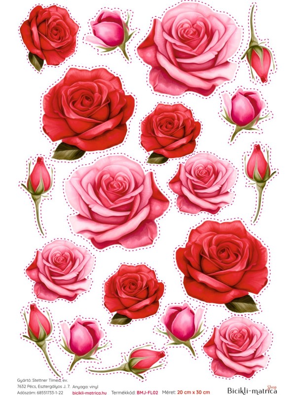 Virág matrica, rózsás kerékpár matrica szett, piros rózsa virágos bicikli matrica csomag
