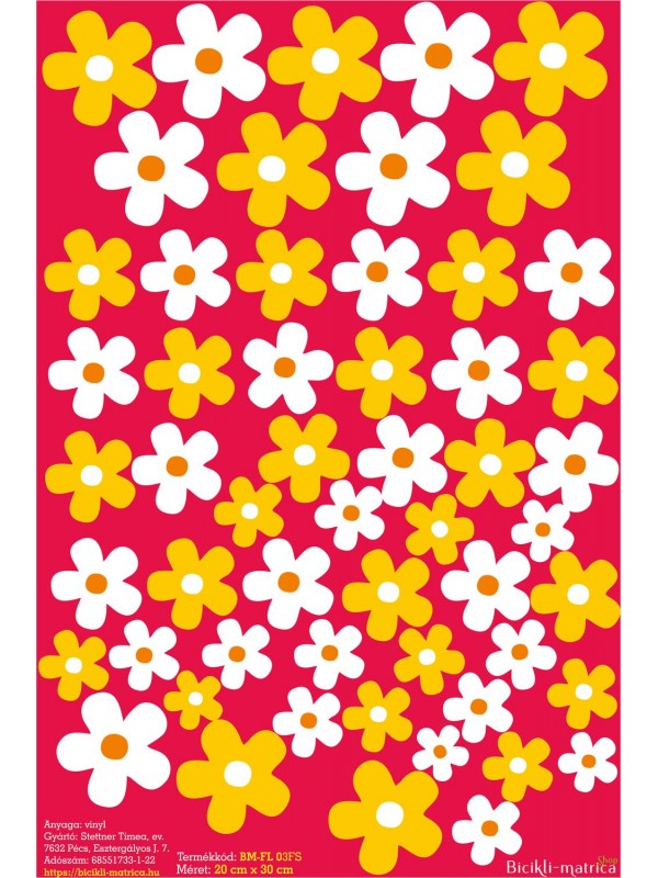 Virágos kerékpár matrica, fehér, sárga - 55 db-os