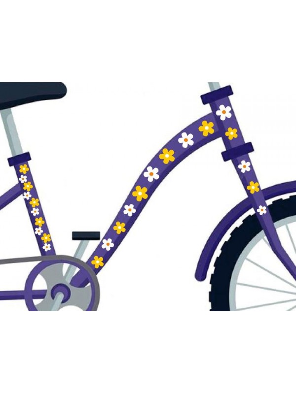 Napsárga és fehér virágos bicikli matrica szett, virágok kerékpár matrica szett