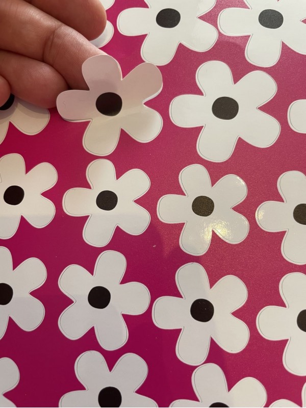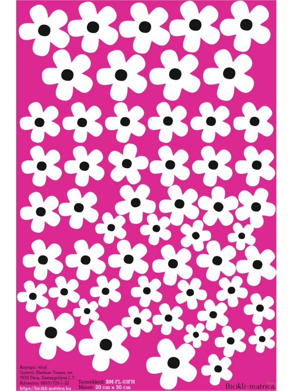 55 db-os szett, az egyes matricák egymástól külön leválaszthatók az ívről és felragaszthatóak. A virágok közepe fekete!